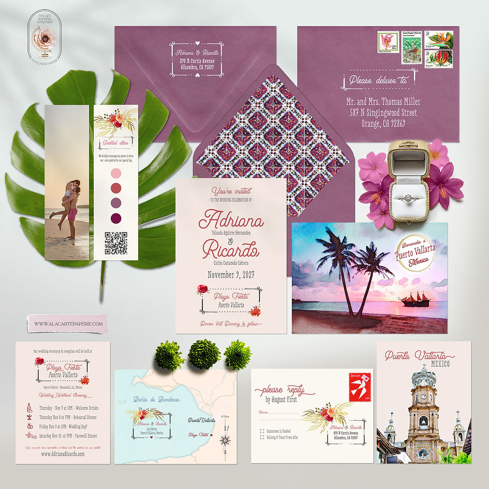 With beautiful illustrations of the most romantic wedding venues from around the world, each design our Pre-designed Curated Collection can be personalized with your unique wording. Please contact us for an estimate if you'd like design or illustrative changes.